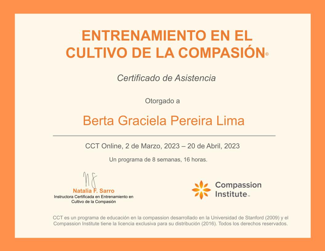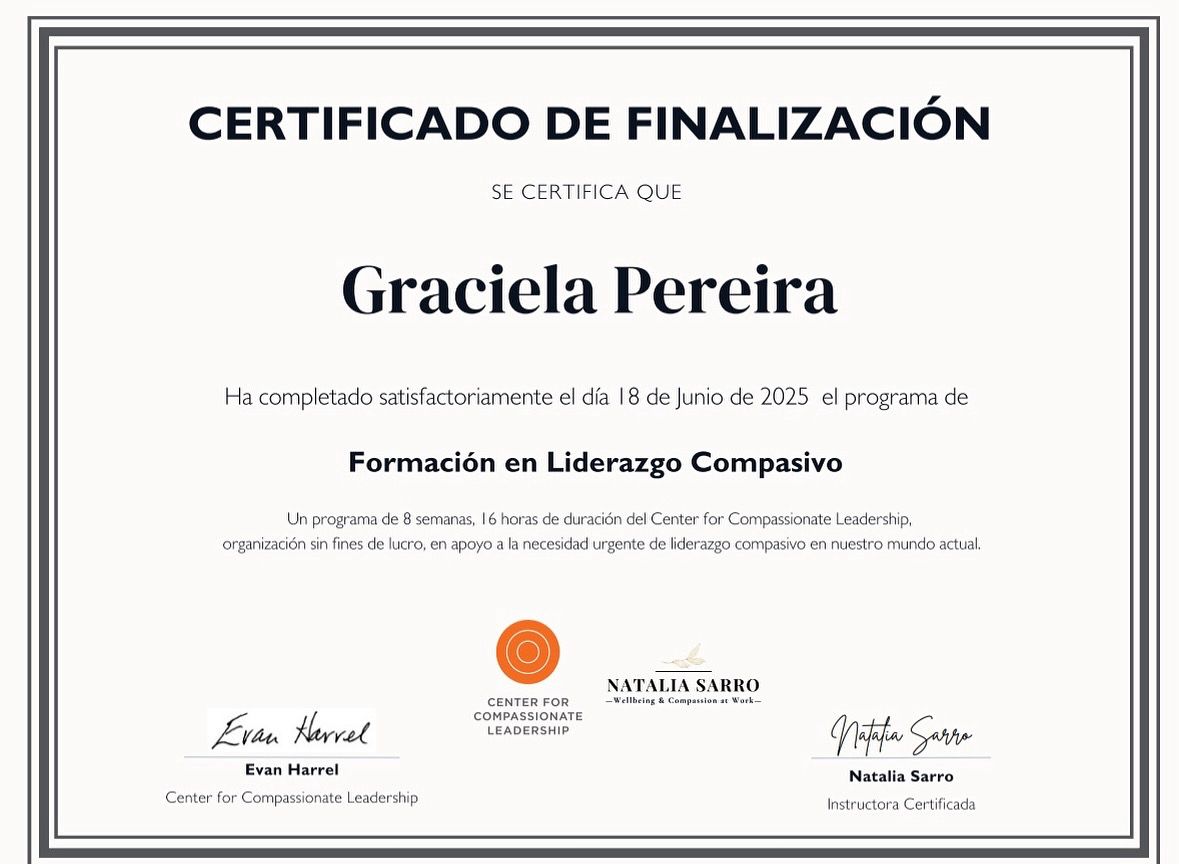 Me encuentro en continuo aprendizaje en torno al campo de la psicología de la compasión con profesionales tales como Lic. Natalia Sarro y Dh. Gonzalo Brito Pons, quienes me brindan valiosos conocimientos para mi práctica diaria.